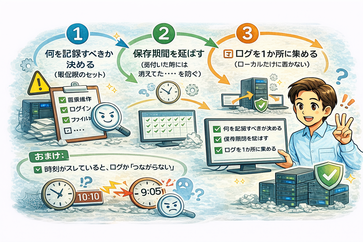 - 成功に見えても、実は対象が抜けている(設定ミス・容量不足など)